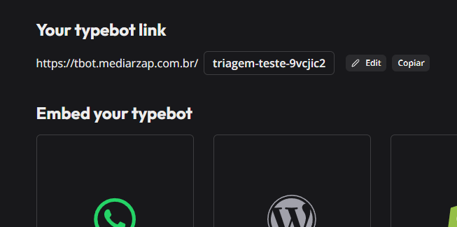 A conexão de WhatsApp trabalha com a integração com TypeBot