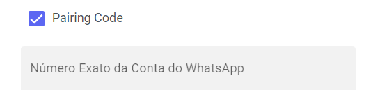 Você pode utilizar o Pairing Code para enviar o código de conexão diretamente para o seu celular, informado o número exato do celular no campo abaixo (DDI + DDD + Número sem caracters especiais)