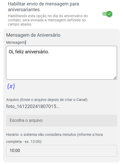A conexão de WhatsApp trabalha com envio de mensagens de aniversário